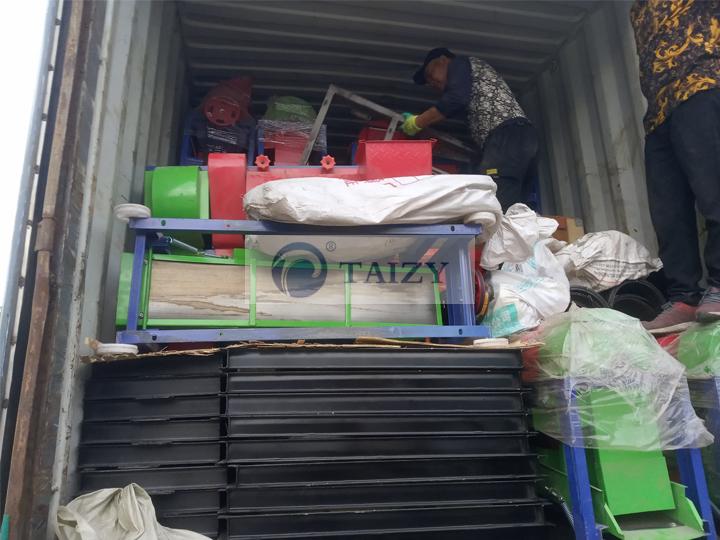 Due to the good quality of our machines and professional after-sales service, the customers trust us very much, so they made a second purchase from us. He bought more machines for the second time. Including 10 large fully automatic corn threshers. 4 peanut shelling machines. 43 multifunctional threshers with a single cleaning. 7 multi-function threshers with double air cleanings. In total, the customer purchased 64 machines from us for the second time, and we also extra gift a chaff cutter machine and a chaff cutter and crusher. All the machines are filled with a full 40 HQ.